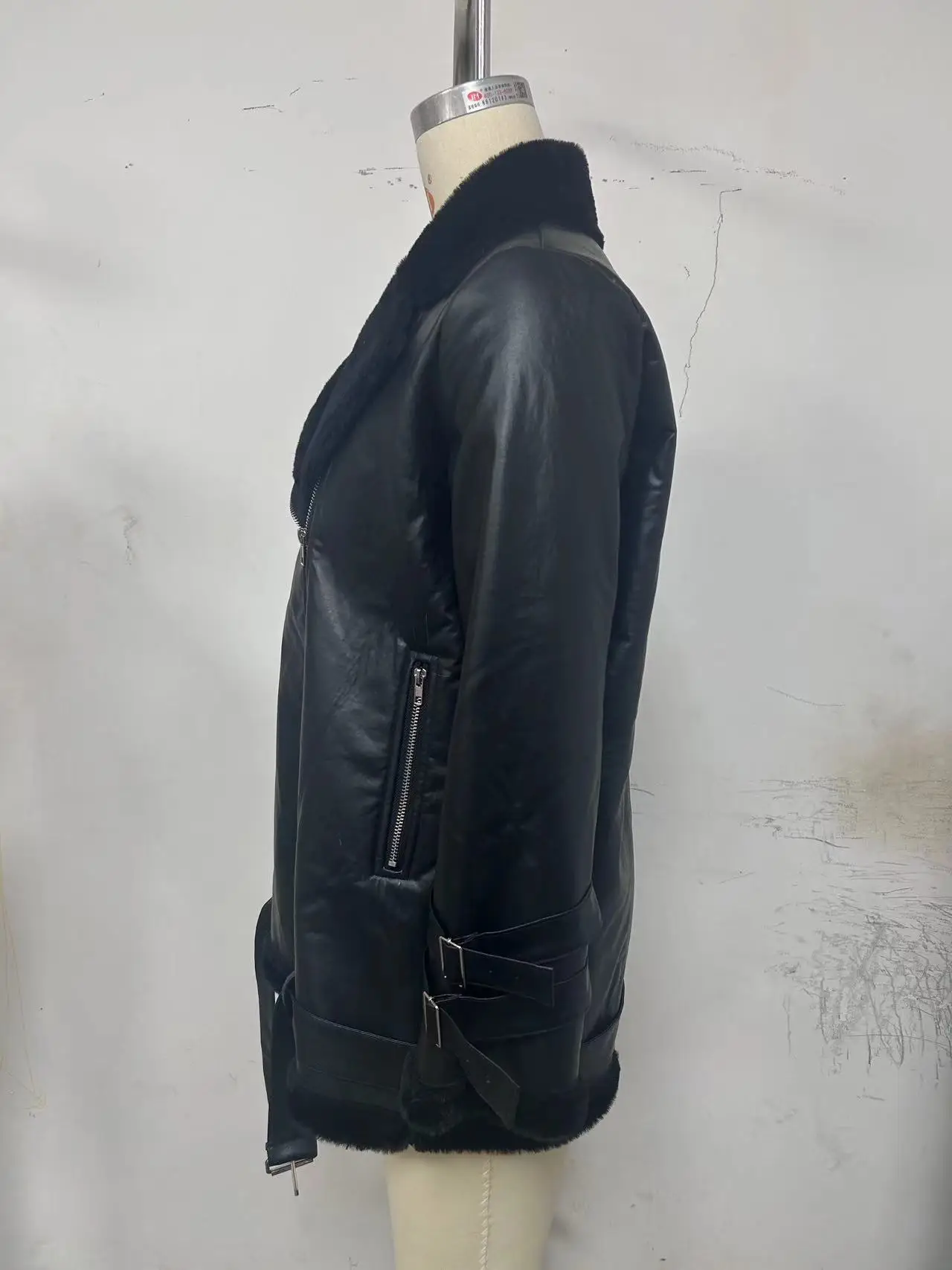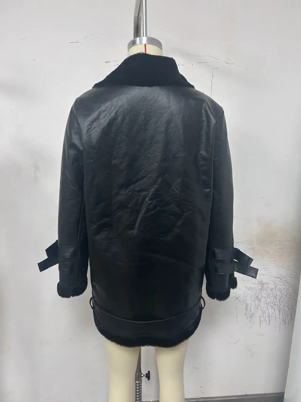 New Woman's Fashion Thick Warm Faux Shearling Jacket Coat Vintage Long Sleeve Belt Hem Female Outerw
