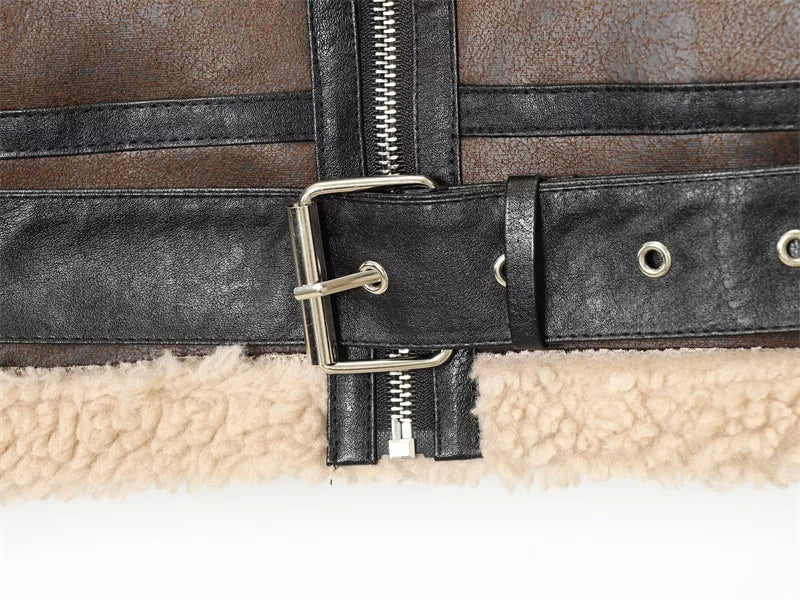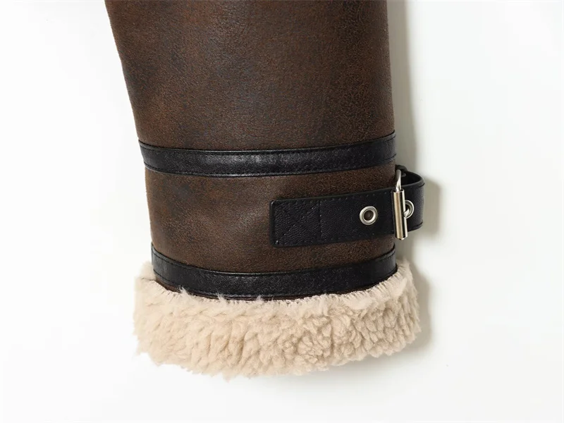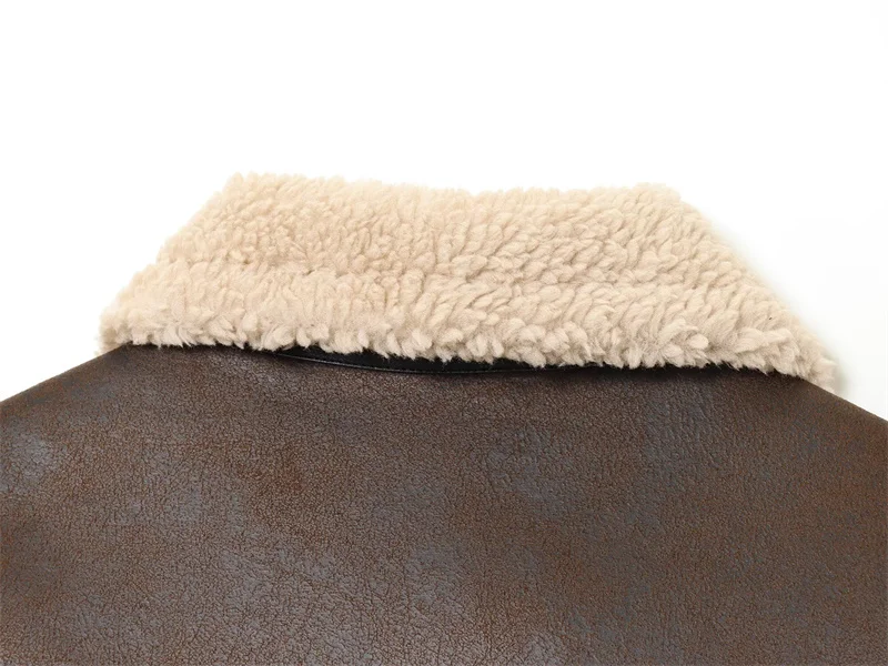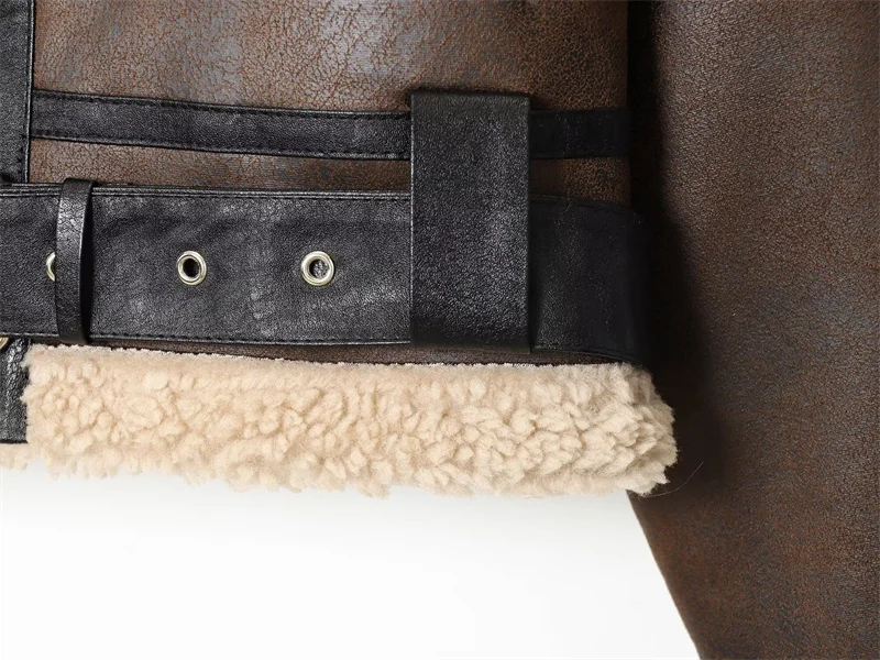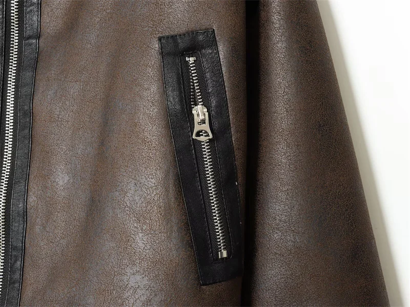 Women's Jacket 2025 Autumn New Style Brown Long Sleeve Short Warm Jacket Casual Fashion Biker Personality